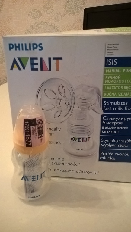 2. От старшего сына остался молокоотсос авент, но к нему нужна бутылочка.