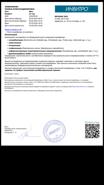 В общем 13-го жду врача, все у нее уточню и распрошу, но уже сейчас рада до безумия. А все потому что в инвитро этот анализ собирают по другому, вот видимо и чище результат получается, а в поликлинике просто пробирку ставишь на стол и усе - вали.