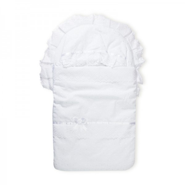 не знаю что у вас с погодой,но у нас сейчас жарко,и вместо конверта я бы плед взяла,ну и очень понравился первый вариант,удобный и красивый (шапочку одну какую нибудь,мне в горошек понравилась)