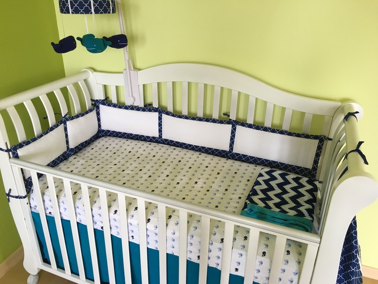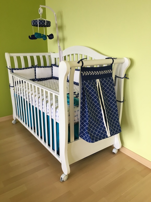 Классно ещё что низ синим закрыт. У нас кроватка очень похожая, разве что без колёс и этот низ не закрыт (