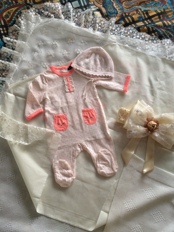 Пледик очень тонкий, отличный! Ну если не заморачиваться, то и так можно. Я 3 варианта подготовила: боли с коротким рукавом, боди с длинным + ползуны, слип. Ко всем есть шапочки и носочки купила тоненькие. Ну и плед на всякий пожарный, а там по ситуации буду смотреть.