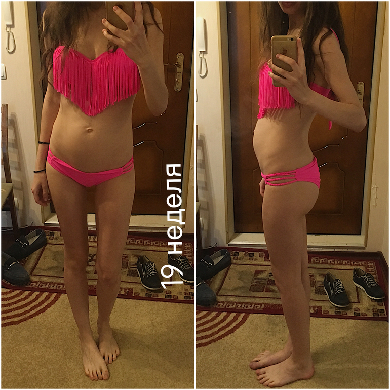 Отличный животик и не скажешь,что 19 недель))) а какой у вас вес,если не секрет?)