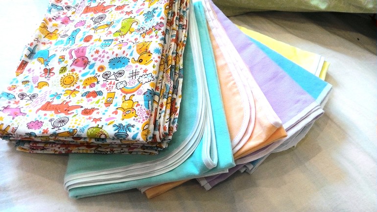 Еще, хоть пеленать и не планирую, но нашила вчера пеленок - 5 фланелек и 5 ситцевых - подложить, укрыть, вытереть