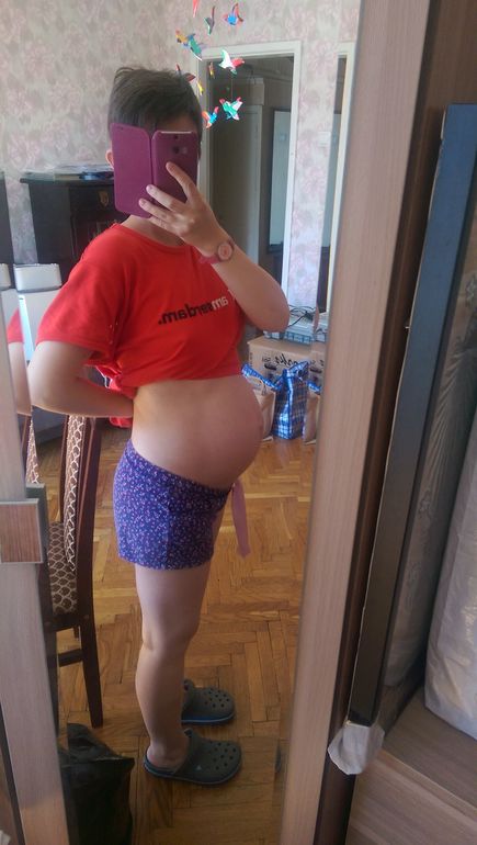 Очень славный и аккуратный животик! Нет здесь никакого лишнего веса, все это после родов уйдет очень быстро и легко. Все идет прекрасно!