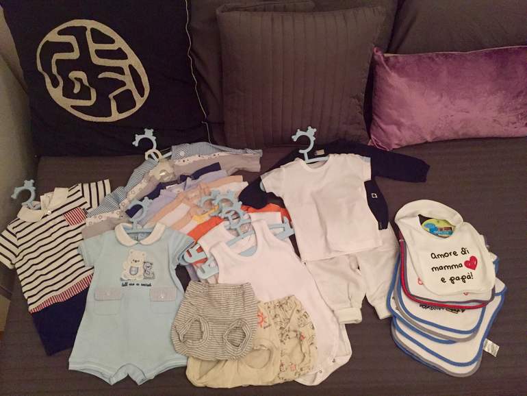 А то мне тут говорят, что мало, надо 2-3 комплекта одежды за день менять... Но умом понимаю, что много точно не надо, смотрю на деток друзей, они за месяц очень сильно выросли.