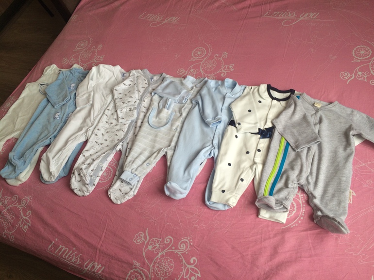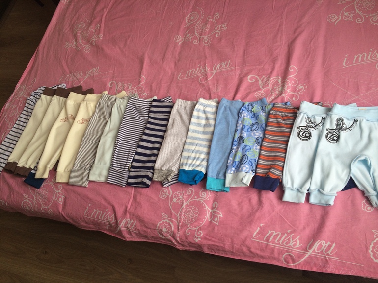 Ползунки, кстати, не стала вообще покупать, старший вырастал из ползунков просто ну очень быстро, решила, что младший будет в штанишках и носочках, штанишки хоть подольше можно поносить, сначала штанишки, потом бриджи))))