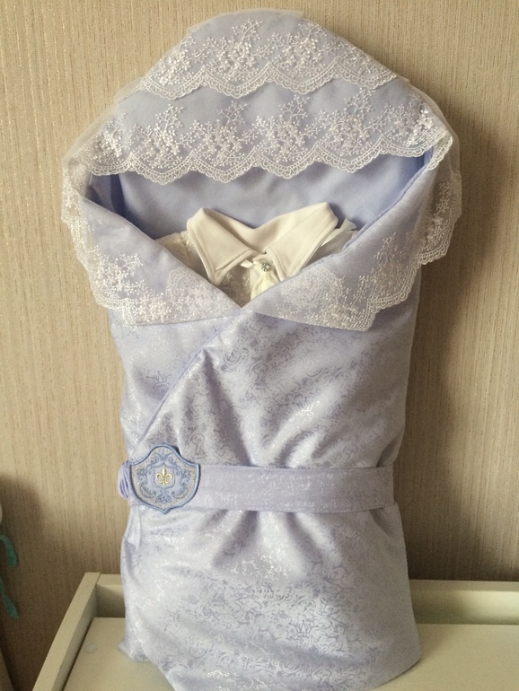 На выписку тоненький летний конверт приготовлен, хб слип с шапочкой, подгузник и на всякий случай тёплая пеленка