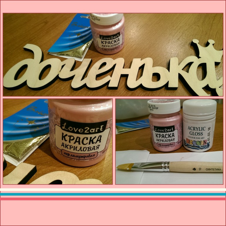 Купила я вот такой набор для творчества,декоративное слово Доченька и спец.краски,а также блестки. Просидела пол ночи)) и вот ,что получилось! Не судите строго,я далека от рукоделия,но ведь не главное это ..главное сколько любви и нежности я вложила в эту поделку) доченька,мы ждем тебя!!!