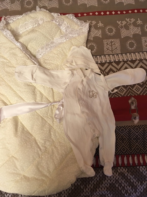 Очень нежно и мило. Даже если будет холодно, ребенок не замерзнет. Мы выписывались 7 июня,было холодно градусов 12 и лил дождь, но мы из роддома в машину из машины в подъезд, так что некогда было мерзнуть. А наш комплект у меня в альбоме.