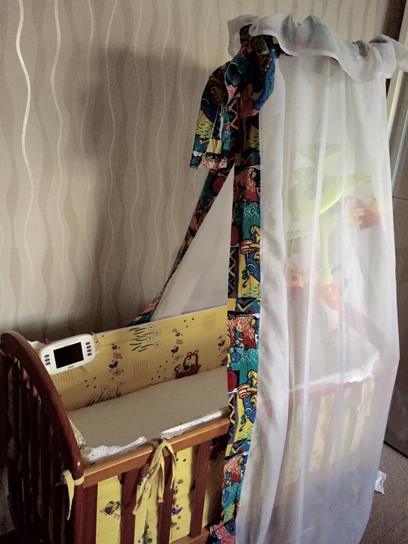 Наша колыбелька, с мобилем . Мобиль реагирует на плач ребенка и включается музыка, а так же есть светомузыка , Бэйли только с ним и засыпала . Камеру мы оставили ту же , пока еще за Бэйли наблюдаю , но осталось совсем чуть чуть ))