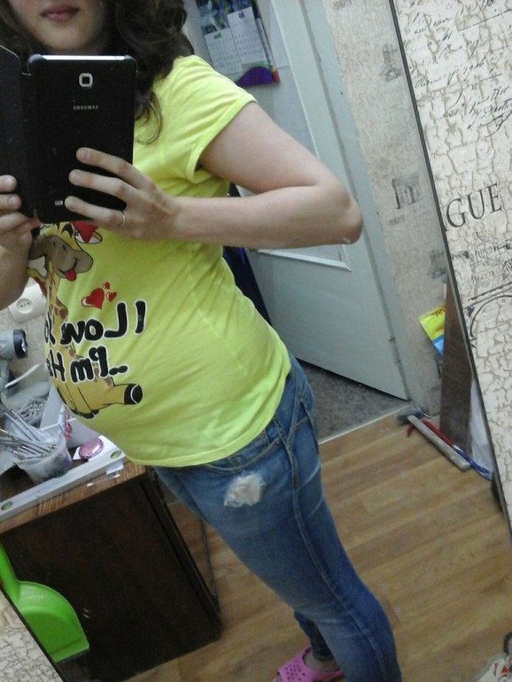В 30 недель прибавка 5 кг. Это для меня очень хорошо. Еще хожу в своих любимых добеременных джинсах, правда пуговицу приходится фиксировать резинкой.