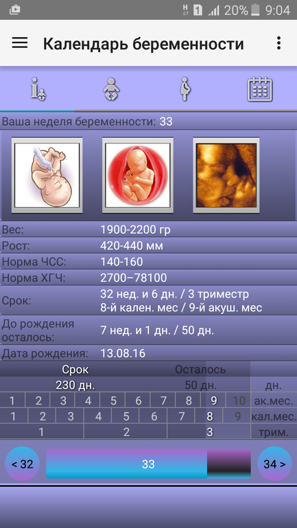 А у меня такое же приложение, но нет почему-то этой таблички внизу про срок и сколько осталось.. Этим у меня другое приложение занимается )))) очень жаль, что оно стало только вес писать, а не "ваш малыш размером со средний арбуз" - меня эти надписи очень веселили ))