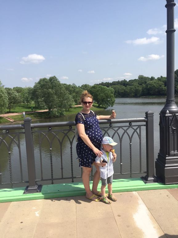 Результаты узи: вес 2050гр, плацента поднялась, уже 5,2 см и это почти норма, юхууу, время еще есть, до 6 точно за месяц поднимется!!! Воды в норме, никакого многоводия и малышка головой вниз легла, я так и чувствовала, икота прям низко низко доносится, одно но, одна петелька пуповинки у нас. Ну это ничего, может снимет еще, Свят во время переворота аж 2 накинул, так и родился, во время родов снимали их. И еще пузик худоват, сказали белок кушать, чтоб пузик нарастить, но вообще обещали не крупную малышку, а очень даже крошку, ну и ладно, девочки и должны быть небольшими малышками ;))) щеки всегда наесть успеем ;) Остальное все у нас отлично! В общем ждет меня врач не ранее 2-4 августа, уже смотреть на какое время роды планировать, обещала мне что дохожу ;) хотя если что сразу звоним ей и попусту не беспокоимся, все будет чики-пуки ;))) ну и фотка меня телепуза, на кануне в Царицино погуляли ;)))