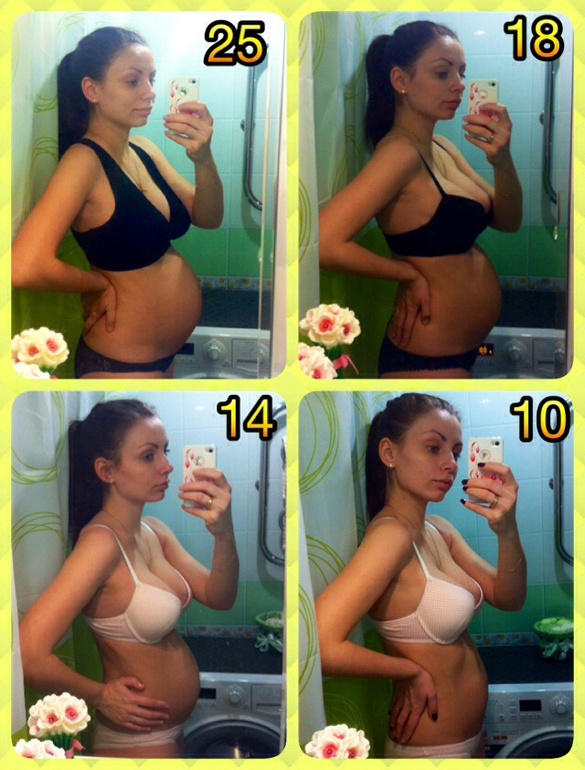 Фото пузиковНаконец-то я добралась до ББ и фотопуза. Я уже в отпуске, который плавно перетечет в декрет, чему я несказанно рада, потому что работать в жару уже тяжело. Срок сегодня 25+4. Сыночек очень общительный у нас)) то попу выставит, то ножку, а если погладить его, то спрячется. Лежим то поперек, то вертикально, короче крутимся-вертимся как вздумается. Я начала носить бандаж, чтобы он принял правильное положение, но что-то ему совсем не нравится когда я его надеваю (хотя делаю все по правилам). Еще стали немного отекать руки, поэтому кольца решено было все-таки снять на всякий случай. Прибавка в весе уже 8 кг!!! Не планировала я конечно такого стремительного набора веса, но ничего не могу поделать...не могу я на овощах сидеть... Начала ходить в фитнес клуб. Посещаю бассейн и хаммам (не на долго). Девочки, кто-нибудь посещал хаммам? Не вредно?Спине на много легче становится после посещения, поэтому планируют до самых родов ходить, если не будет противопоказаний. Из груди, кстати начало подтекать молозиво, но не много, по несколько капель. Это ведь нормально, девочки?