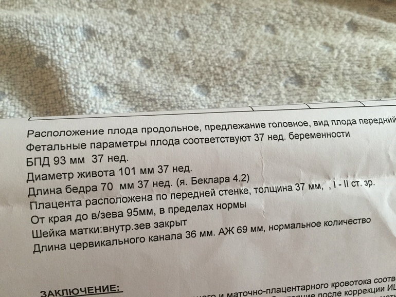 Вес и параметры на 37 неделе .