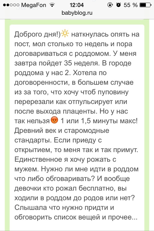 Я ездила в роддом до родов на день открытых дверей. Съездила в четверг, а в субботу уже приехала рожать. Практически в каждом роддоме он есть. Там сказали что нужно с собой и вообще о пребывании. Пуповину нам долго не отрезали. У нас сразу выкладывают ребенка на живот на 2 часа. За эти 2 часа и пуповину отрезают (минут на 20-30 ее точно оставляют, потому что я сама перерезала), и послед выходит, и зашивают. Позвоните в роддома в вашем городе, может у них тоже есть дни лекций