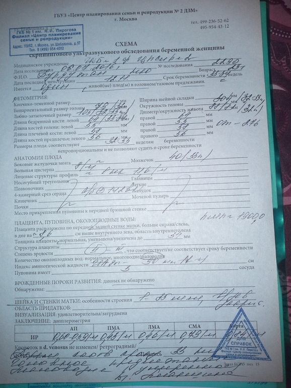 Давно не писала, не было времени особо. Чувствую себя хорошо, ничего не ломит, не болит, единственное, что беспокоить начало, так это отеки на ногах ииии..... не прекращающаяся изжога) В жизни не знала, что это такое, а теперь мы с ней засыпаем, спим и просыпаемся) она единственная, кто меня всё время "поддерживает" не отходя ни на минуту. ФУ быть такой... С питанием всё хорошо, аппетит хороший, прибавка в весе на сегодня 13 кг (что-то разнесло меня конкретно, жиробасину), но на разгрузочных днях ни грамма не теряю ((( Целлюлит, О мой великий сожитель, тоже не обошел стороной. Надеюсь в форму смогу себя привести после родов, но страшновато, что останусь такой( Растяжек, ТТТ, нет, ну или пока нет... время покажет. Мажусь после душа камелоксом, мне нравится) Молозиво появилось давно, хожу всё пачкаю ) Декретные получила, теперь можно начинать закупаться, готовить сумки в рд. Была сегодня на 3 скрининговом узи в ЦПСиР N2, увидела своего мальчишку наконец. Губастенький, как папа, волосатенький, личико не хотел показывать долго, то ладошкой, то кулачком закрывал, но за 30 минут мы таки его выловили))) Вертехвост, попкой крутил постоянно, подтвердили нам уже точно наличие внушительного достоинства, уж точно ни с чем не спутать) по месячным срок 34 недели ровно, по узи поставила 33 недели, сказала, что малышок прям, вес 1900 гр, рост не сказала, да и я, лохушка, не спросила. Особо меня это не пугает, тк и я и мой братик (к слову, мы погодки, с разницей в 1,3 года) родились тоже маленькими:48 см каждый, по весу я на 42 неделе 2800гр, а брат 2790 на 40 неделе, так что есть в кого). Так же поставила умеренное маловодие, но сказала, что страшного ничего не видит, с кровотоками и у меня и у Кирюшки всё хорошо. Очень жаль, что не печатают фото по бесплатному скринингу, даже на телефон сфоткать не дала, а наш папа так хотел увидеть) Завтра на прием в ЖК, будут делать КТГ и должны выдать родовой сертификат. В прошлый раз КТГ сделать нормально не дал, датчики прям нагло спихивал, постоянно включалась тревога тонуса) Лежим головой вниз, постоянно выпячиваем попку, чтоб почесали. Начинаешь прям чесать, выпячивает ещё больше, как только прекращаешь- всёёёё.... начинается всемирный переворот, буянит ужасно. Вроде бы всё рассказала. Всем спасибо, кто смог дочитать) Ну и фото результатов скрининга и фотопуз прилагаю)
