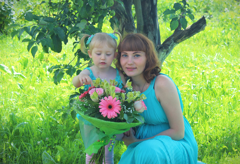 С моей врединкой,топик вязала ей сама,специально под моё платье)