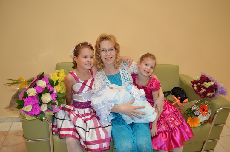 Приготовила теплое одеяло с кружевом (если будет холодно) и вязаный плед (если будет тепло). В день выписки было жарко, пришлось даже детей просить привезти летнее платье.