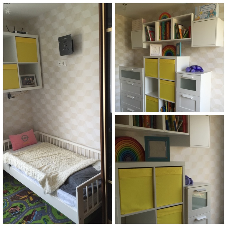 Сынок засыпать на ней не любит, засыпаетс нами под книжку, потом папа его переносит в кроватку и там он и спит практически каждую ночь до утра, иногда прибегает к нам досыпать, но стал все реже и реже приходить, думаю скоро и это пройдет, начнем учится засыпать у себя. Я его не тороплю, как сам будет готов, так и начнем ;) Сейчас тоже икея полюбила, разумно там все, вот только пеленальники и грудничковые кроватки мне не очень у них, а для детихек от трех есть где гульнуть. У нас все по полочкам разместилось и еще место осталось.