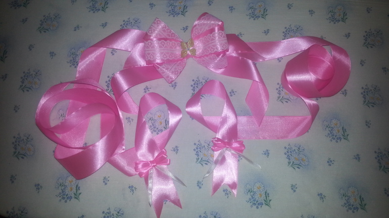 Мне кажется слишком много розового,я бы ленту с бантом сделала белым и кремовым цветом)))