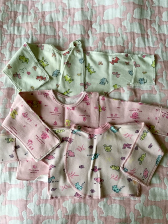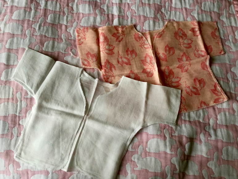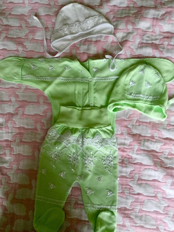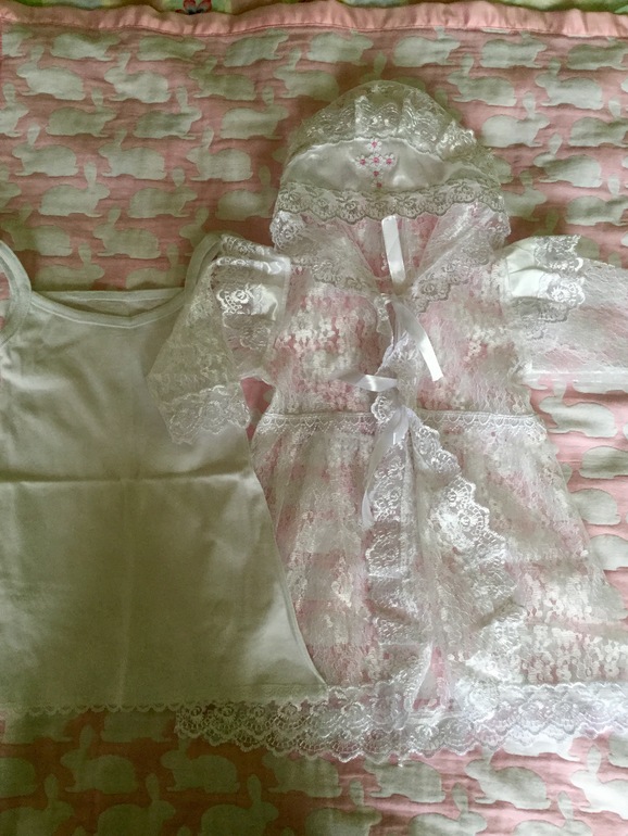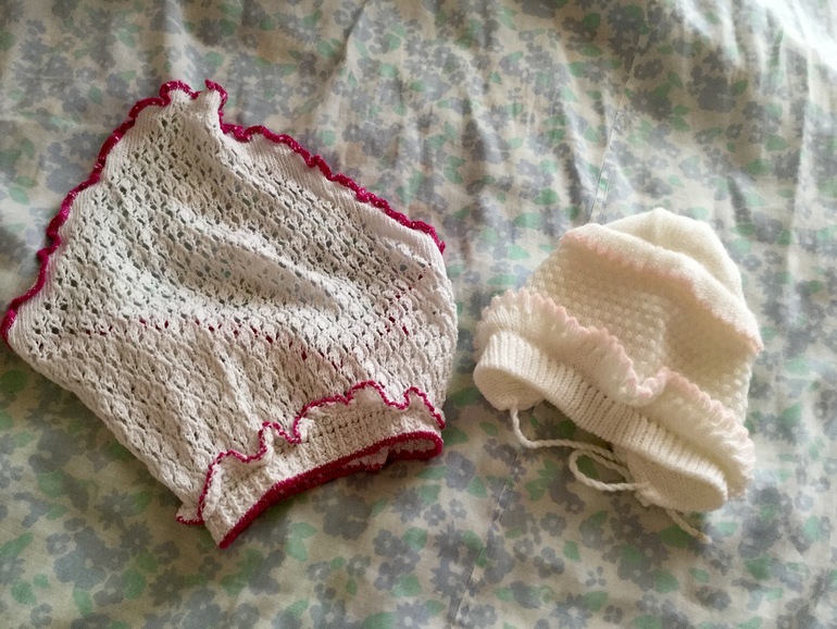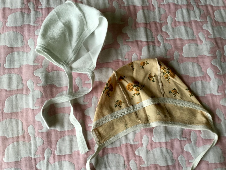 Наследсьво составляют и мои первые вещи: классические распашонки для новорожденной, чепчики на выписку (мальчик или девочка?), косыночку мне мама повязывала после ванны, чтобы ушки не надуло, не простудилась от сырой головы