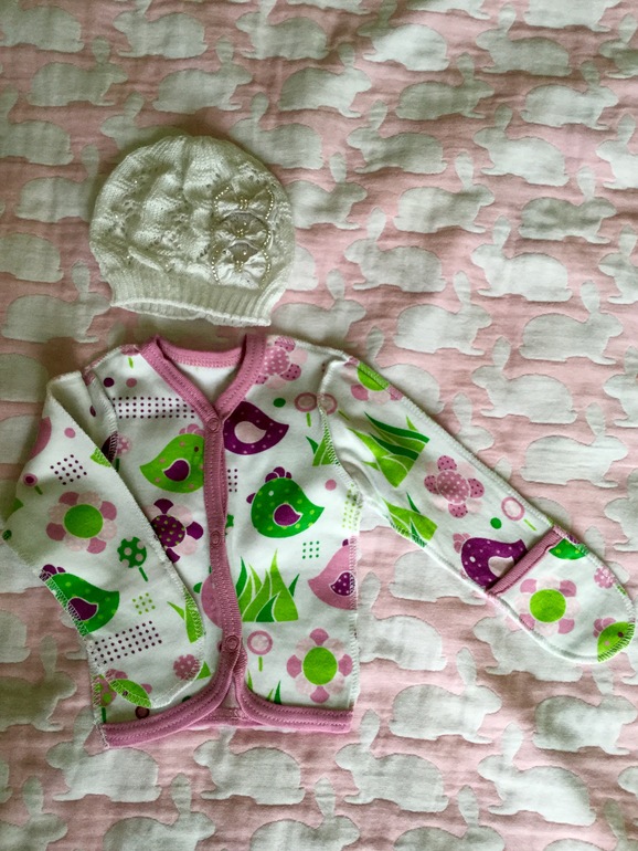 Подарок от старшей сестрёнки и любимой бабушки - самая первая малюсенькая распашонка и нарядная ажурная шапочка