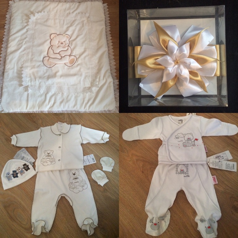 Ребёнку слип+конверт ! Сама в беоеменнлм платье , вряд ли после родов сразу и живот спадёт