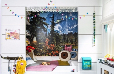 Это интерьер-сказка. Вспоминается Алиса в Стране Чудес. В восторге от Лампы-Мухомора и решения для кровати в нише.