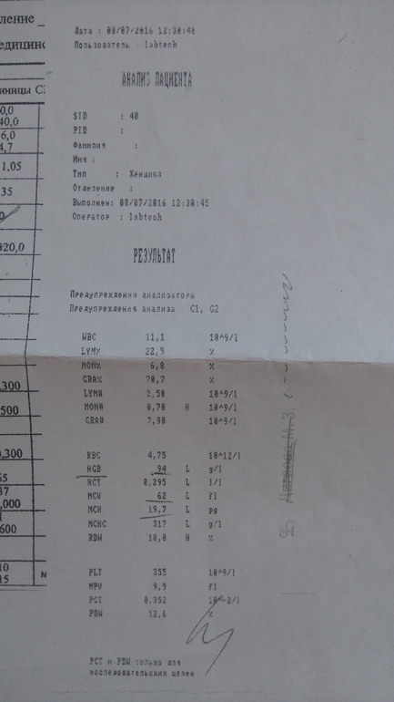К гематологу вообще не попасть, это в новой Москве, записи через интернет не выскакивает вообще, все забито, теперь надо заново к терапевту идти, чтоб направление по новой открыл. И еще анализ на феритинин сдать, для гематолога. Но моя гинеколог, так как я уже 2 месяца к гематологу попасть не могу, отправила в Цпир на Севастопольской к гинекологу, только я не пойму чего она мне может нового сказать, нужно опять думать как туда доехать и с кем дочку оставить. А вот и мой анализ крови, все совсем плохо?! И еще скрининг первый я только кровь сдавала, анализы так и не пришли(. Второй скрининг на анализ крови даже не отправляли. И в эту беременность родов вообще не хочется, хочется куда то сбежать...