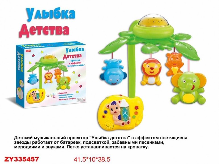 Детский мобиль проектор на кроватку со звуком и светом Улыбка детства