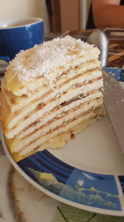 Вот и все - торт на сковороде готов! Дайте ему пару часиков пропитаться и можете приступать к поеданию этой вкусноты.
