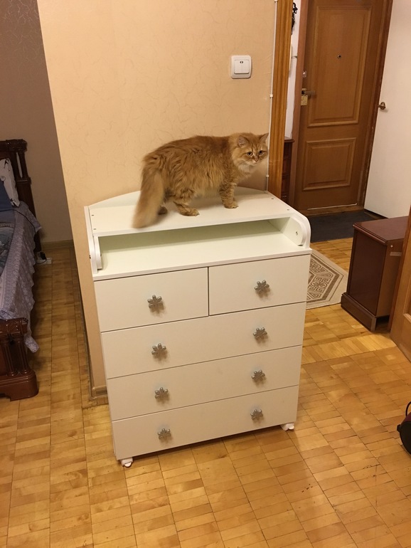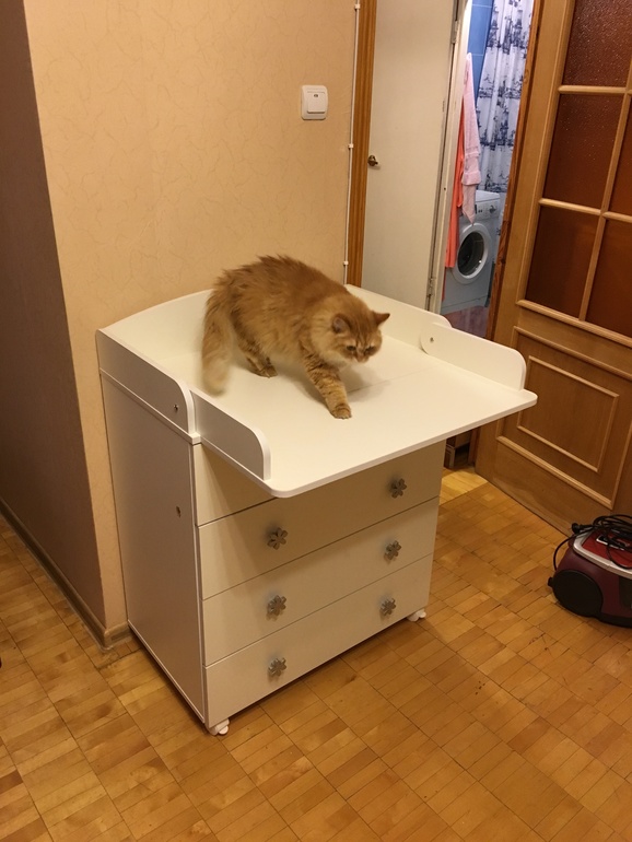 Котяра красавчик 😍 моя котя тоже уже всё облазила, из кроватки её гоню, ругаю, а как только выйду из комнаты - она все равно тайком в неё лезет. По поводу организовать.. Начала я значит организовывать и поняла, что такие комодики нифига не удобные (у нас такой же принцип раскладывания пеленальной доски) объясню почему: когда доску откинули, доступ к ящикам закрыт, т.е. все причиндалы и подгузники должны стоять либо рядом с комодом, либо прям на этой доске. Но у меня накладка (которую я тоже не продумав купила) на всю эту доску( так что возьмите накладочку Уже, чем доска.