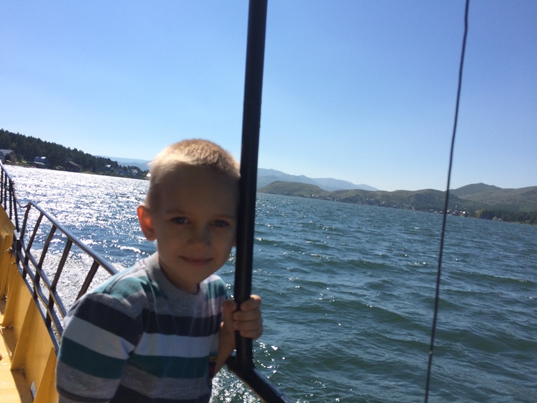 В один из дней решили прогуляться на теплоходе. Это была скучная трехчасовая прогулка. Приплыли все замерзшие, злые и голодные
