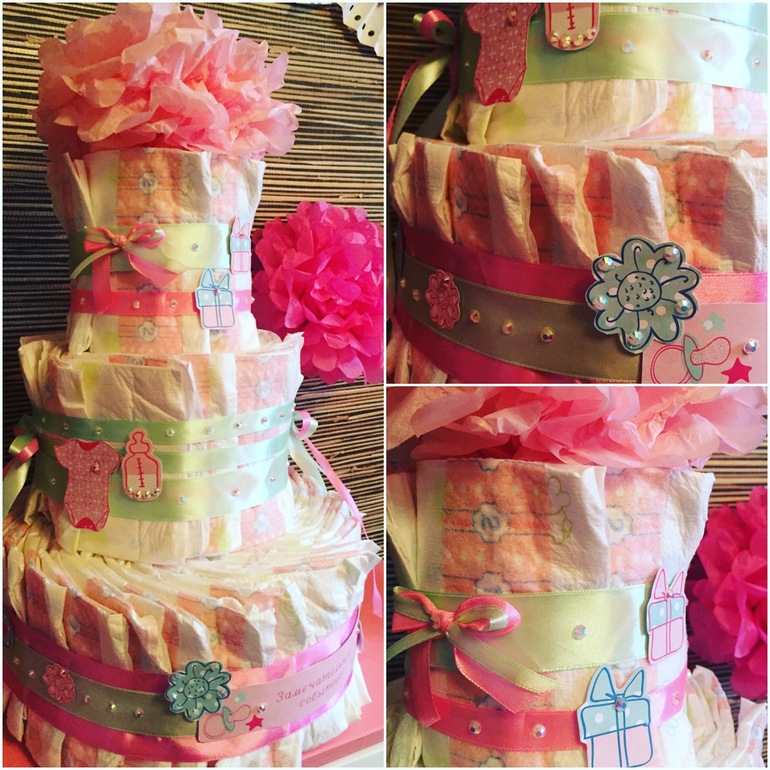 Сделала тортик из подгузников) Пробую себя в искусстве детского декора)