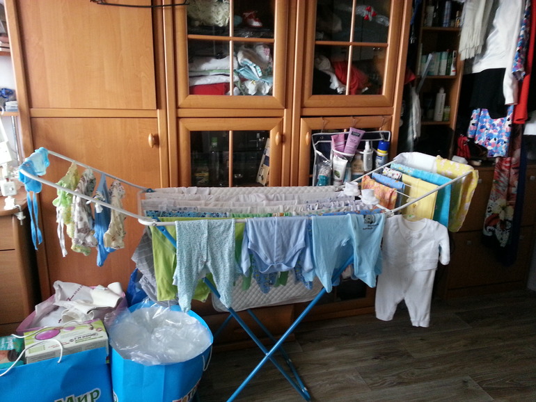Примерно вот так сейчас постоянно выглядит комната- пакеты, сушилка, шмоточки... Начинает казаться, что я ничегошеньки до родов неуспею, но шевелиться активнее почему-то не начинаю.