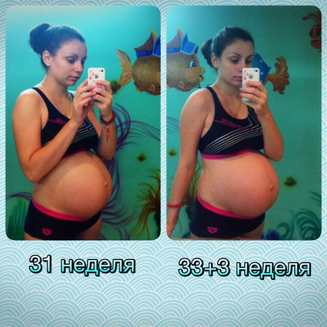 В первую бер с таким как у вас в 31 нед я рожать пошла))) прибавка 8 кг была. Прикрепление было по задней. Сейчас полсрока пройдено только, а живот уже такой же размером из за прикрепления по передней)))) хорошо прибавка пока 2 кг за 20 недель). Хорошо вам доносить! Водичка в помощь! В басике и живот и спину не чувствуешь совсем - расслабление полное!)))
