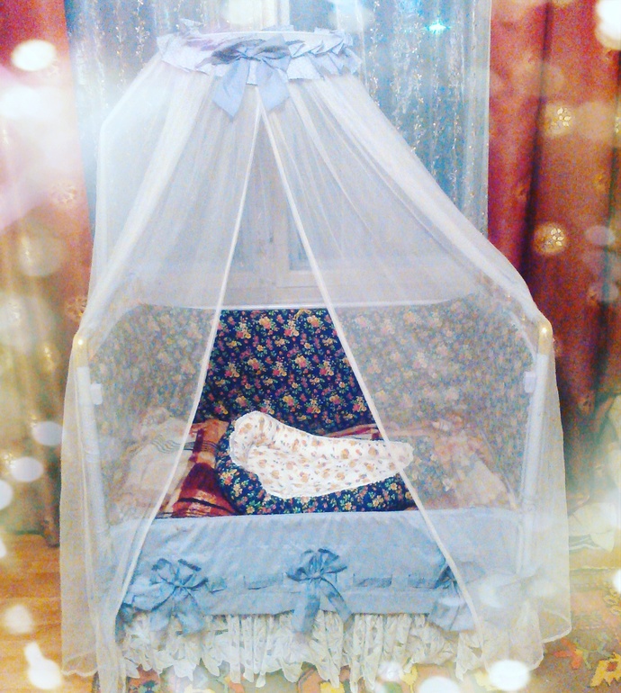 Кроватка осталась от дочери, только бортики были розовые, вот я по ним голубые и кроила, один в один, только немного переделала способ крепления, раньше, чтоб снять бортики, надо было кровать разбирать, теперь снимается все легко, на липучках и завязках)))) а нижние оборки(у самого пола) это ламбрикен от тюли, который остался лишним))))) вот я его и приспособила))))) не пропадать де добру))))