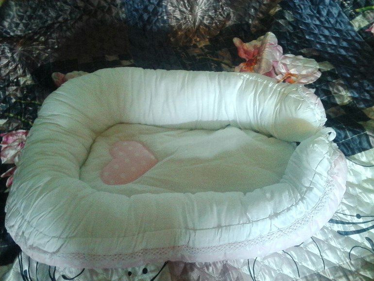 Постельные принадлежностиЗаказала на ярмарке мастеров кокон-гнёздышко,сегодня привёз курьер.Просто суперское такое уютное,долго думала заказать или нет. Выбрала нежное бело-розовое,под цвет бортиков и простынок.Я прям очень довольна.