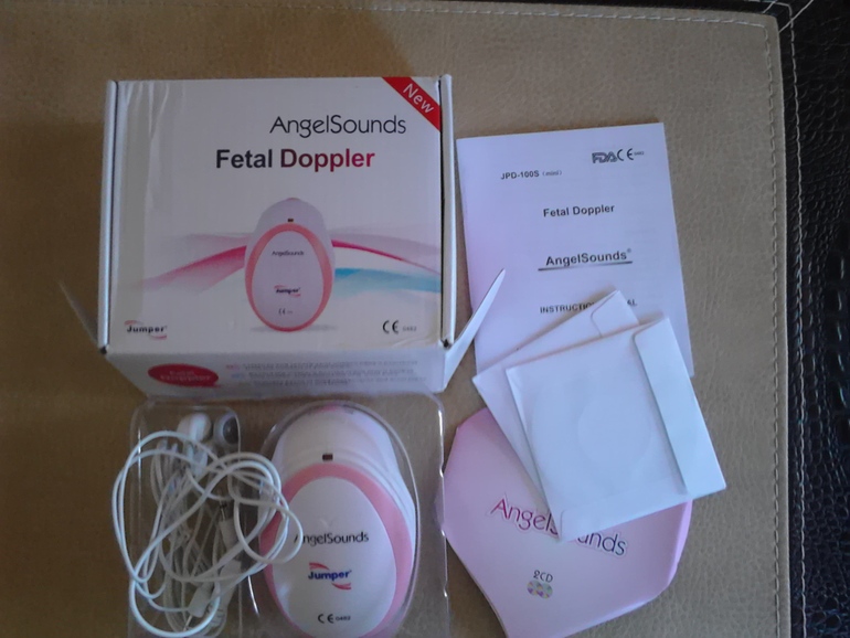 К датчику подсоединяются наушники. Наушники в уши, а датчиком во животику гладишь и слушаешь сердцебиение. Удобно очень когда еще не чувствуешь шевелений, послушала и не надо на узи или к доктору бежать.