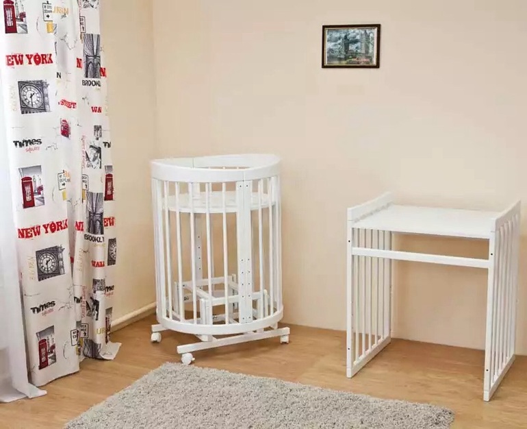 у меня самая обычная кроватка,без маятника,без наворотов.столик был пеленальный ,через месяц отдала:неудoбно было.мне было легче на кровати ребёнка переодевать.кровать нужна была ровно на ночь,да и то только сыну,дочь спала со мной постоянно