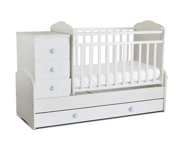 У нас обычные кровати Лель и пеленальный столик из ИКЕА. Пеленать на кровати можно, но спина начинает отваливаться на третий день. В этих кроватях дети спвли до года. Теперь стоят, занимают место. Так что сейчас бы кроватью не заморачивалась вовсе.