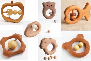 Деревянных нет, пластиковые мою с мылом или средством для посуды и обдаю кипятком. Прорезыватели и соски кипячу)