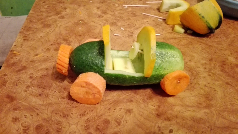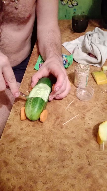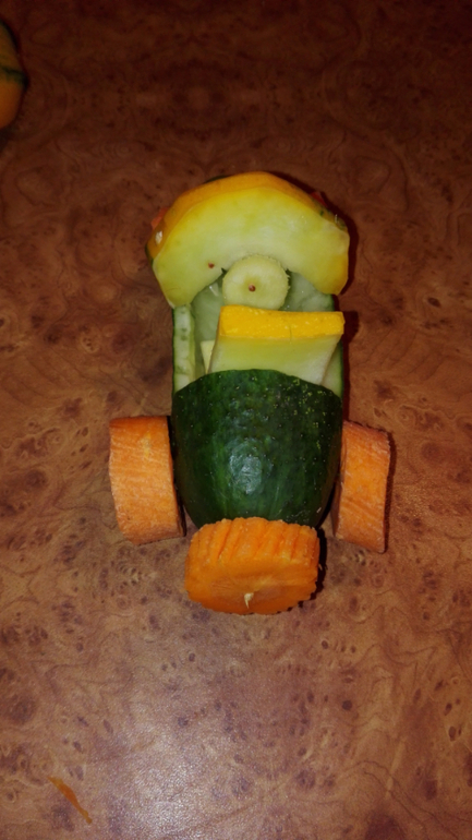 Данька с пн в садике,так что спокойствие и умиротворение в обед у нас)Иногда нечем себя занять,включаю телек,надо срочно покупать нитки и довязать свой дурацкий лало.Делали вот поделку на выставку из овощей ,мой мозг вскипал как всё сделать,мужу как-то не хотелось доверять,ручки не оттуда,но он пришел и нафантазировал лучше меня!