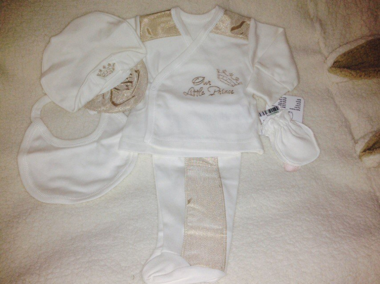 У вас 4предмета в комплекте? Смотрели в магазине комплект один (комбинезон на лямках, шапочка, кофточка, распашонка, слюнявчик(или как правильно). Про царапки не помню) мне показалось много всего. Мы собрали комплект. Покажу завтра, сейчас уже улеглась)