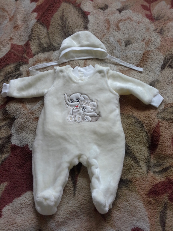 Соедующий со слоненком и мышонком тепленький и очень мягкий кофточка и ползунки, в реали желтенького цвета