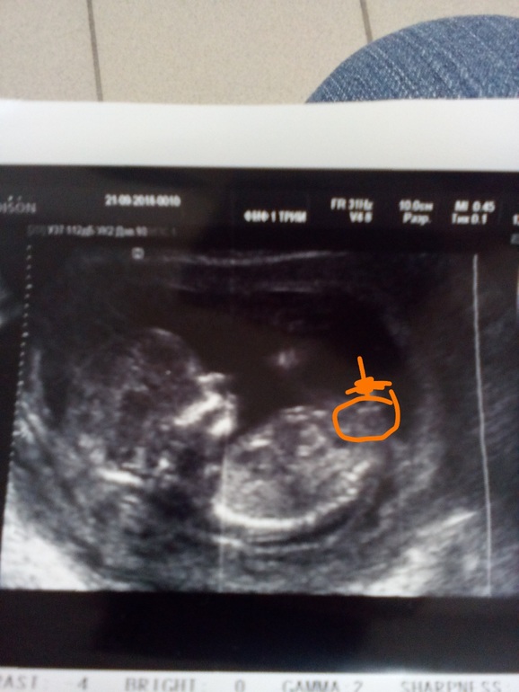 Пол малышаДевочки,вчера прошла первый скрининг,врач пол не стала предполагать,дала лишь. Фото,,,сказала все равно сейчас не точно,,, я вчера загрузила,и многие сказали сто похож малыш на мальчика!!! Вы не подумайте,я и мальчику буду рада и буду любить, но все же мечтают о доче,ведь сынок уже есть у нас любимый!!! Посмотрите ещё фото- одно оригинал,а второе я отредактировала, и посетила где ( как мне на самом деле кажется) тот самый бугорок! То ,что на первом фото( по чему все ставят на мальчика)- мне кажется это ножка, просто с такого ракурса))) если бы все было так вероятно, то арас бы мне сказала ( я думаю)!!! Фото под кат