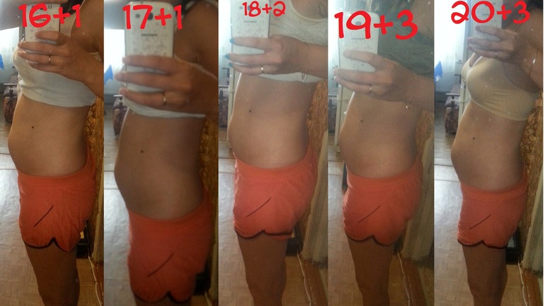 А вот динамика. Как вам? Маленький животик или такой и должен быть на моем сроке? Такое ощущение, что похудела)))