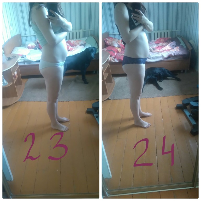 У меня через раз так!!! Просто на первом фото газов побольше...)))) а на втором поменьше!))) или на первом поела, а на втором нет))) или в туалет сходила))))) такая же история с пузом у меня, в 30 недель меньше чем в 27)))) а в 32 как в 25))))