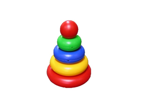 где-то к 6 месяцам дочь стала с интересом наблюдать, как я собираю пирамидку. После чего она с задором ее разбирает и мусолит кольца. Пирамидка пока такая, только у нашей шарик сиреневый.
